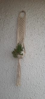 This beautiful hanger can accommodate two plants in one hanger. Suitable for different pot sizes due to the nature of macrame. General appearance of the plant hanger varies depending on the type of container used.